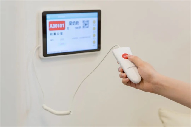 房间里的电话经过巧妙的设置,无需接通即可通话,工作人员会定期拨打电话查询长者状态,电话就算未接通也能进行语音沟通,大大减少了长者紧急时刻无法呼救的风险。